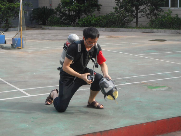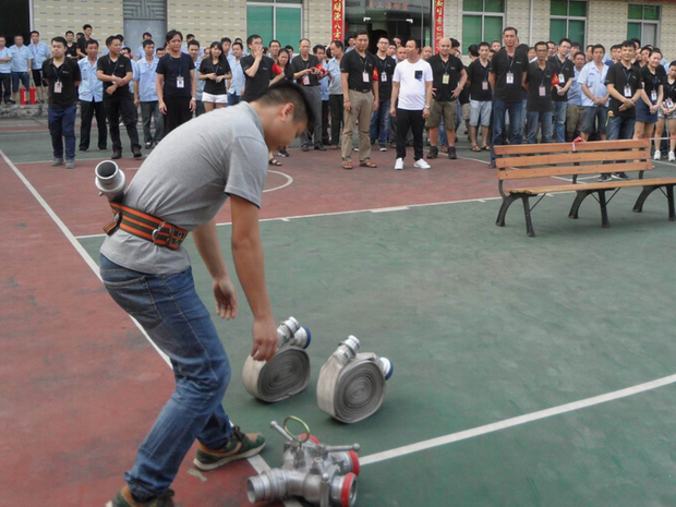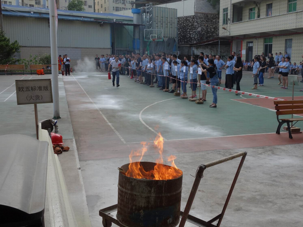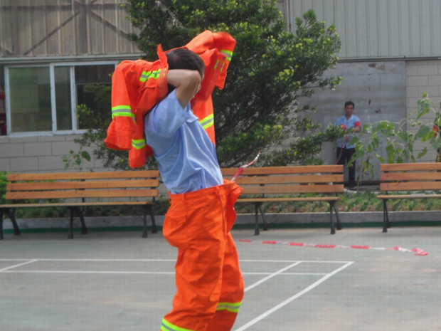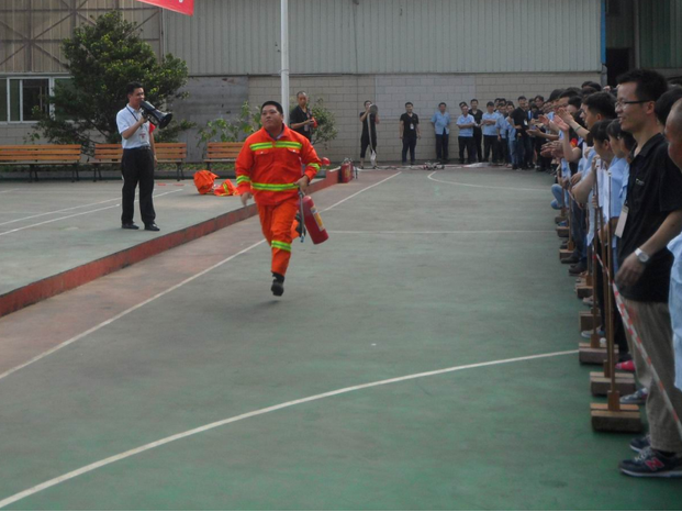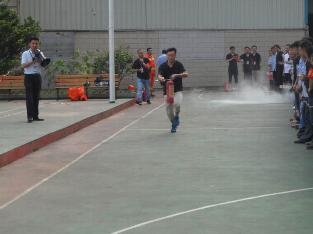 消防演練按照預(yù)定的方案,有序、緊張地進(jìn)行。整體疏散到位后,各部門(mén)人員在公司宿舍前的籃球場(chǎng)集合,進(jìn)行了人員的清點(diǎn)統(tǒng)計(jì),最后發(fā)現(xiàn)財(cái)務(wù)部?jī)擅麊T工沒(méi)有被疏散出來(lái),義務(wù)消防員立即展開(kāi)了搜救,及時(shí)解救了被困人員。隨后,義務(wù)消防員進(jìn)行了空氣呼吸器佩戴、兩盤(pán)水帶連接、100米滅火器實(shí)操、穿戰(zhàn)斗服匯報(bào)表演,部分員工進(jìn)行了滅火器現(xiàn)場(chǎng)滅火演練。